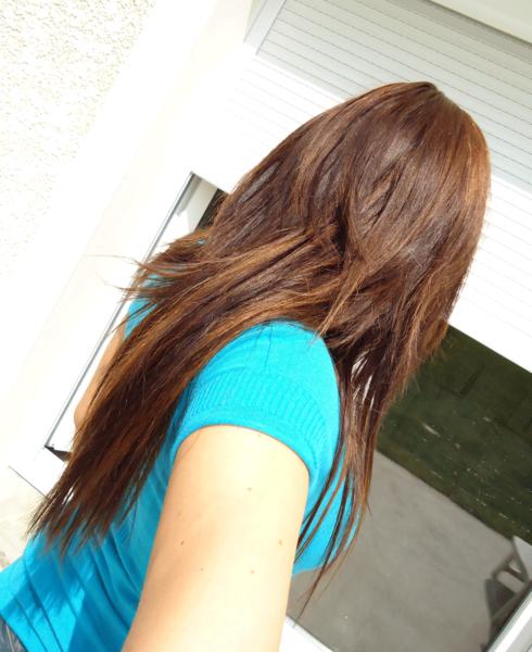 Me voila, je vous post quelques photos prises aujourd'hui, cheveux lavés, effilés et quelques mèches claires remplacées par du #4 (ce qui était commandé à la base, mais chez Remy-Hair.fr il semble que le 4 soit en fait du 2...).