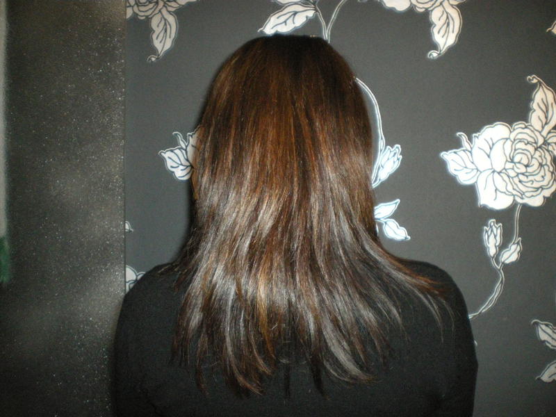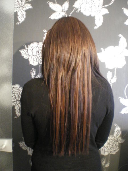 ET BIEN MOI JE PENSE que la photo prise de l'arriére ne rend pas bcp car les cheveux non pas encore été laver et de plus je pense qu'un dégradé sera utile car c'est une cliente qui a un dégradé à la base donc aucune pose sur ce modéle et sans coupe ne pourait être mieux que cela, le rendu dans un cheveux long et tous de même longeur est évidament plus beau dés le jour 1 CAR aucun probléme de démarcation mais je trouve les couleurs et la pose correct il est vrai que je pense que les cheveux de la photo prise de l'arriére sont en moitié vers l'avant gros désavantage,si les cheveux n'on pas été tous porter a l'arriére pour la photo.