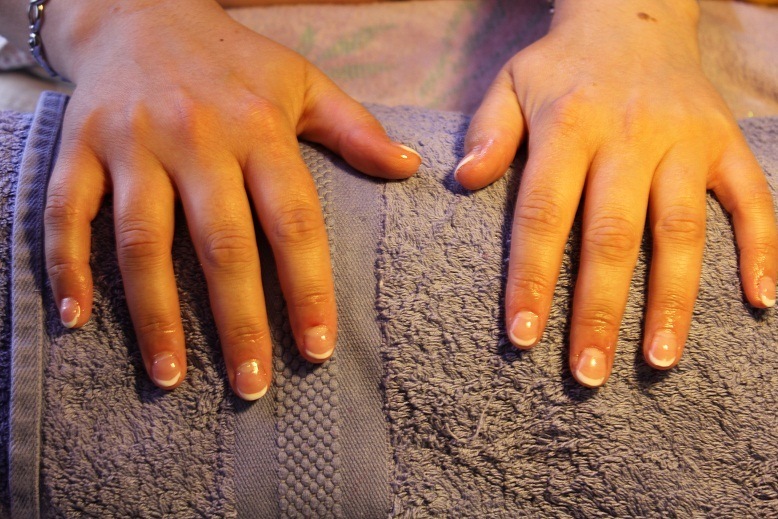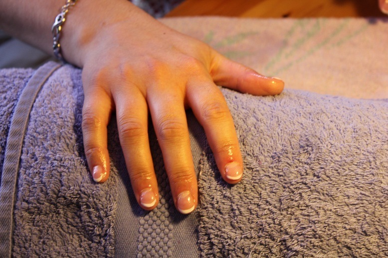 Ma petite Collègue grande rongeuse m'a demandé de lui faire un semblant d'ongle, au début me suis bah alé ça va allé mais je vous avoue avoir eu de sacré bouffée de chaleur en faisant cette pose.