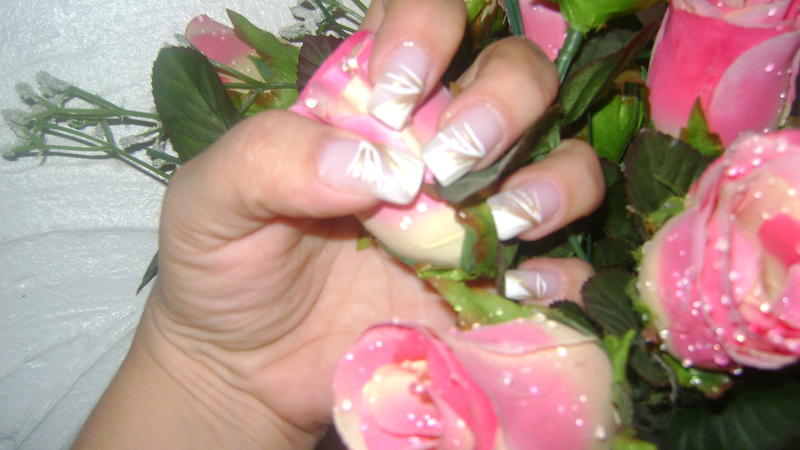 pose sur moi toujours résine, french au vernis blanc en biais soulignée de trait doré scintillant