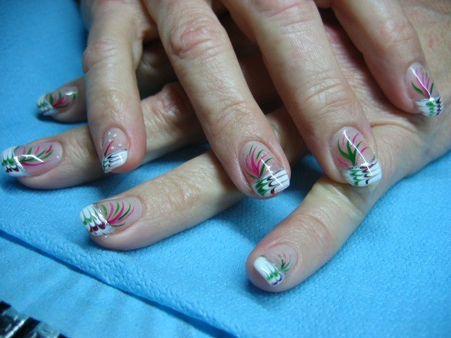 voilà ce qu'a voulue ma cop cette apres midi, elle est un peu fofolle.... perso j'aime pas le melange du rouge et vert sur la plaque de l'ongle... mais bon il en faut pour tout les gouts...