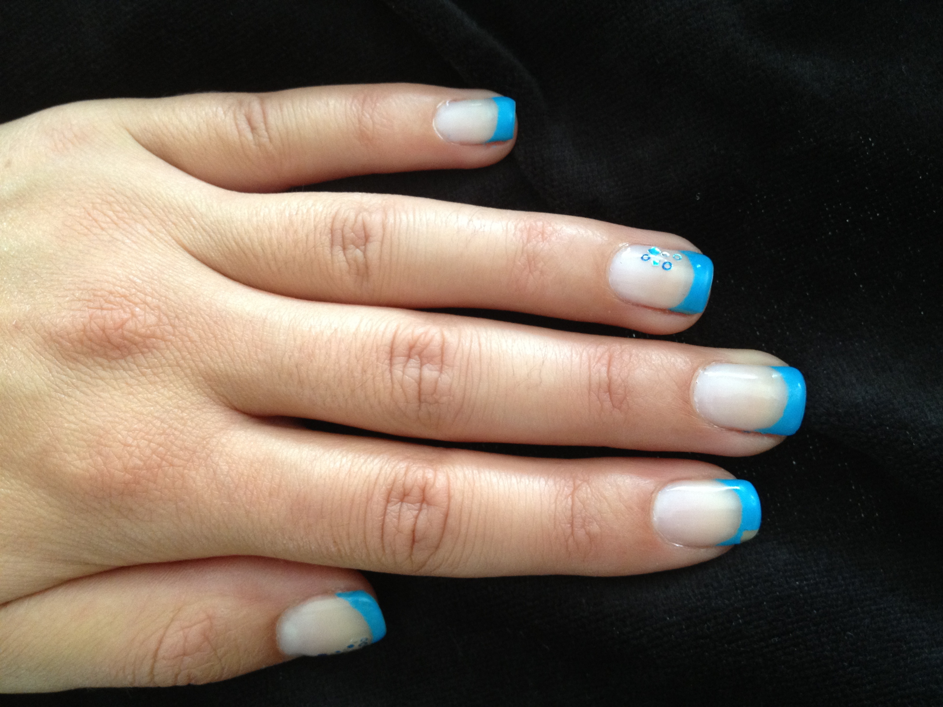 Cc les filles ! Joli la pose bleu .. Jai pas le zoom dc peu rien dir dautre.. Lol .. Le sourire est mieux.. ^^ .. Sinon ben ct juste pour vs faire un petit coucou.. Ah oui ! Vs savez la.semaine derniere je me suis faite une pose gel'in french blanche sur les pieds et ce n'est qu' a la fin ke je me ssvrendu compte ke javai oublié le nail prep et le primer.. Gt pressée c pour sa lol :-) pour linstan sa tien tjs.. Depuis le 05.10.12.. On vera combien de tps..lol