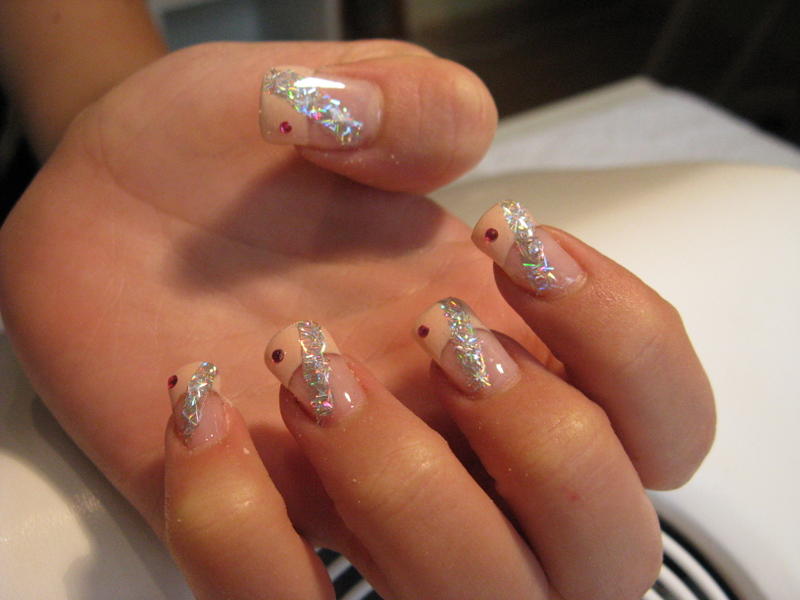 Pour les paillettes, j'applique une fine couche de gel au spot, ensuite je saupoudre les paillettes dessus et avec un bâtonnet en bois je pousse et aplatis les paillettes, ensuite je fait la construction.