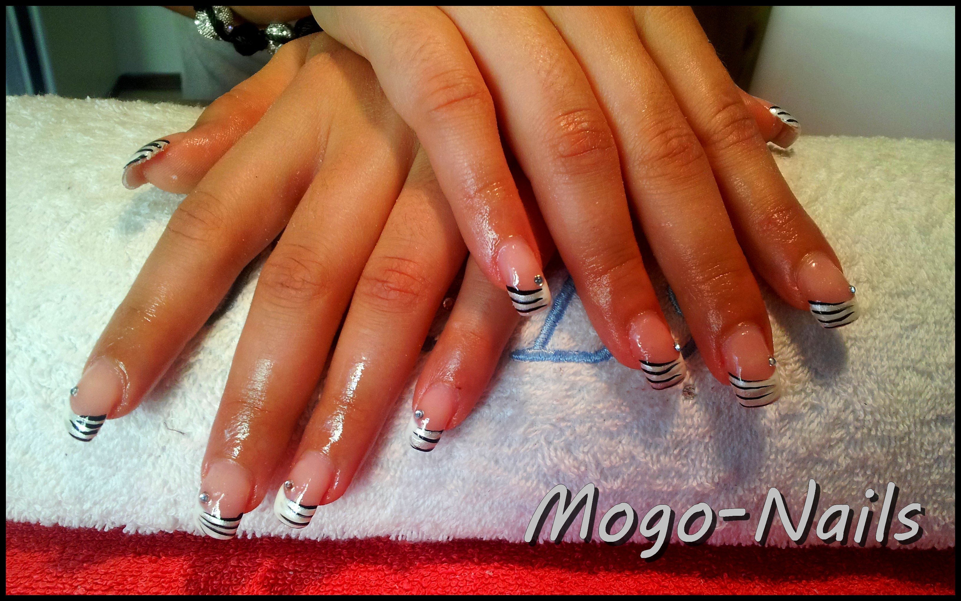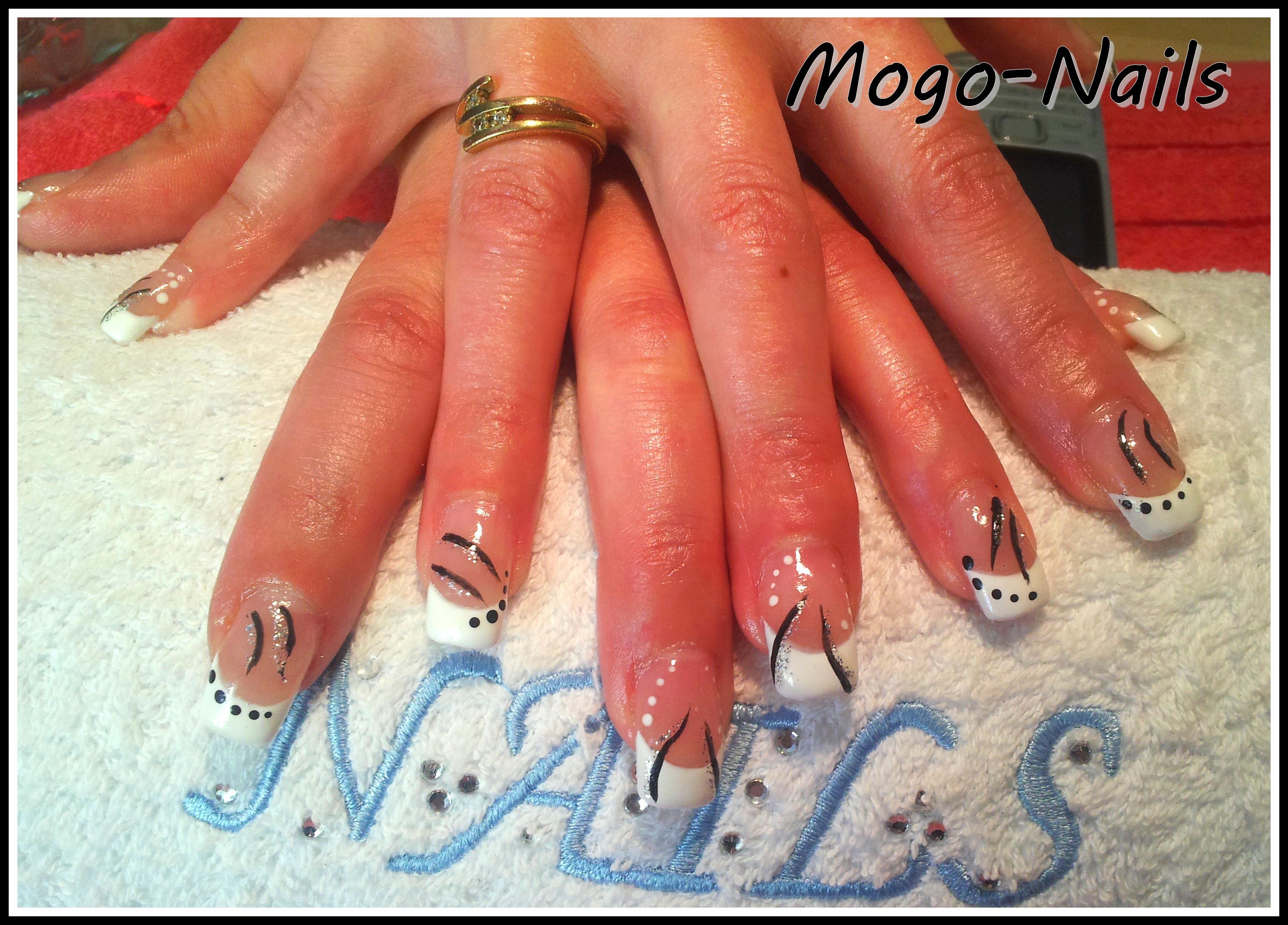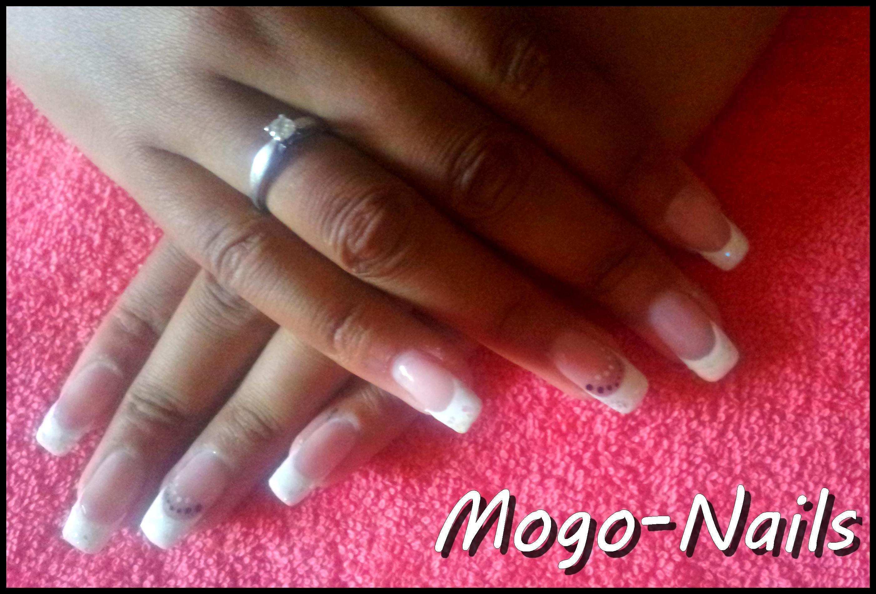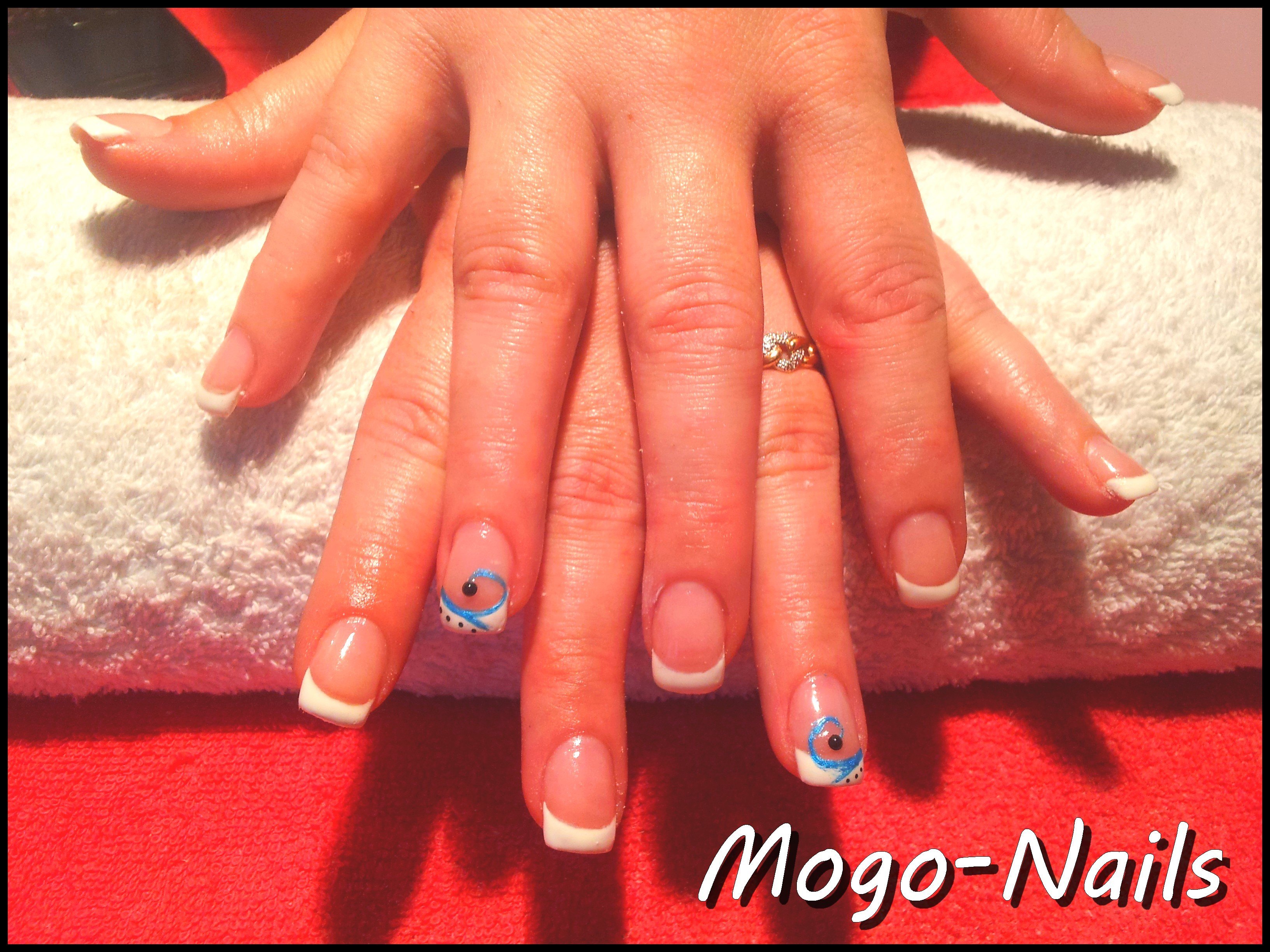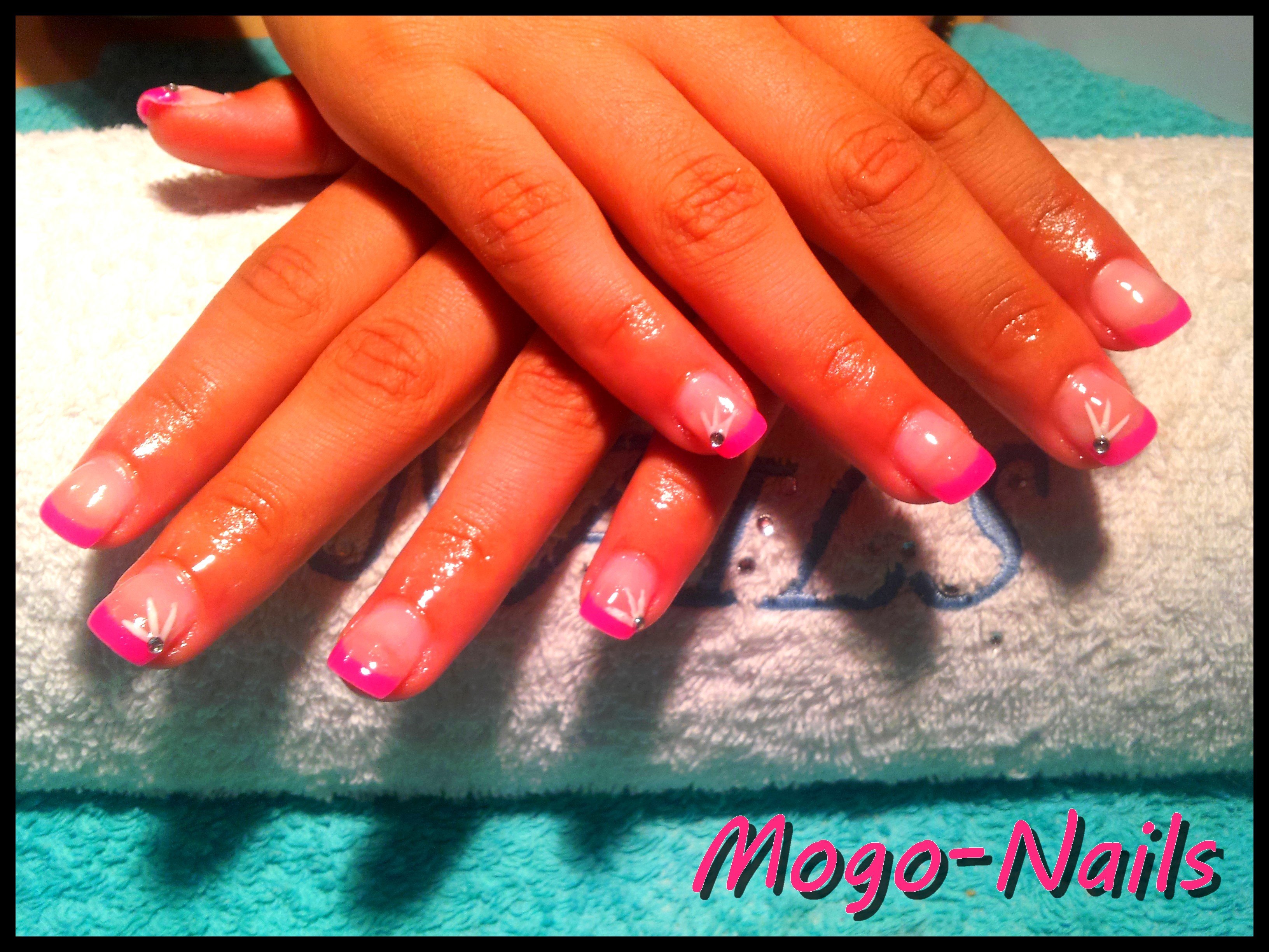 Photo 5: Pose french et petit nail art + strass, [auto-critique : parallèles et french trop épaisse]
