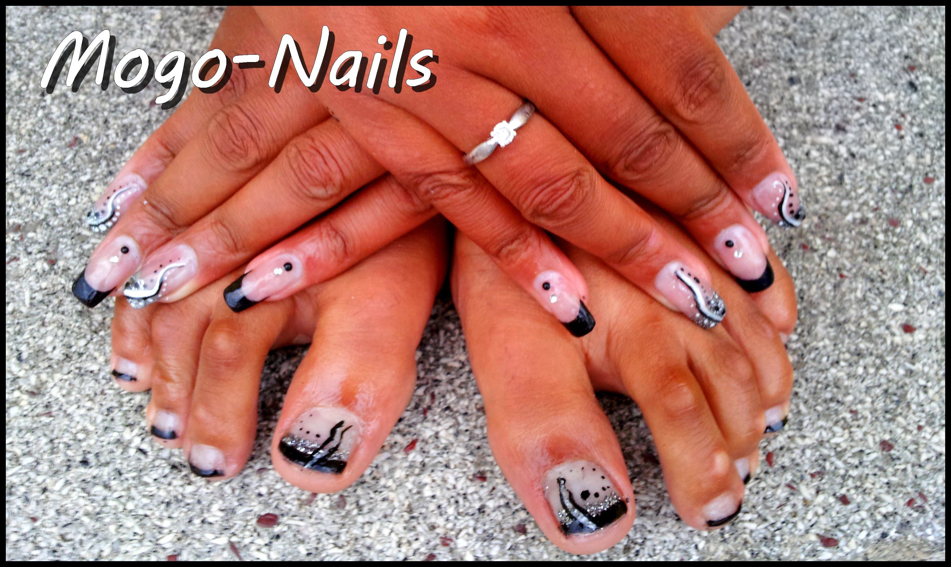 Tes poses sont déjà très sympa surtout après 4 mois!!!! J aime bcp la deco 1 (sealer c'est ça?) La 2 faudrait vraiment faire les traits soit un chouia plus fin ou plus net ( Ahahahaahah ke dis ça.mais je ne sais pas encore le faire moi même !!!!) Et la 3 Très sympa !!!!
