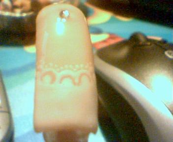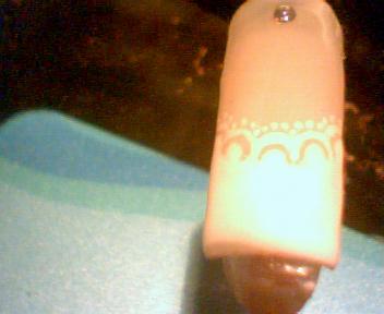 j'ai fais ma french normalement, catalyser puis avec un fin pinceau pour nail art et le même gel french les petits ponts que j'ai affiné par l'intérieur avec un pinceau mouillé au cleaner tu catalyses quelques secondes pour ne pas que ça s'étende, ensuite les points à l'intérieur catalyse quelques secondes et tu termines avec un tout fin pinceau pour les tout petits points au dessus et hop catalyse la durée pour ton gel french :o)