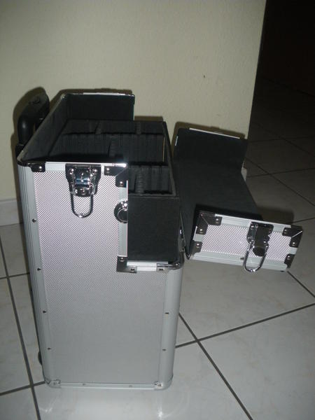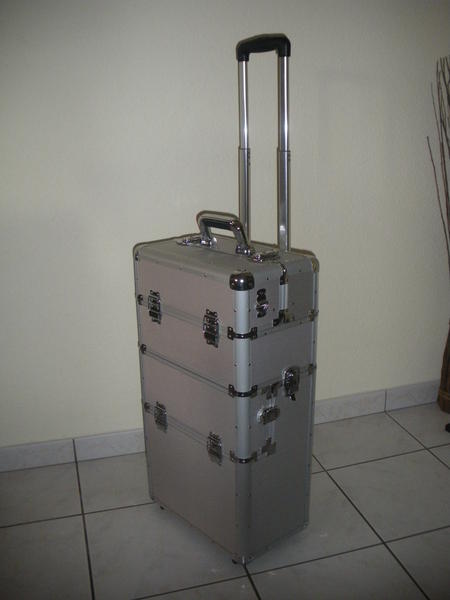 Aujourd'hui je me suis acheter mon trolley! ENFIN:flocool:!!!! Oui et alors vous allez me dire:ayalou: C'etait pour vous donner le tuyau car je l'ai acheter chez casto a 59,95 et je crois que c une promo! Voilà je vous le montre! Il ne me reste plus qu'a mettre tout mon matos dedans!!! :oops: je crois que j'aurais du en prendre deux!!!!:ayalou: