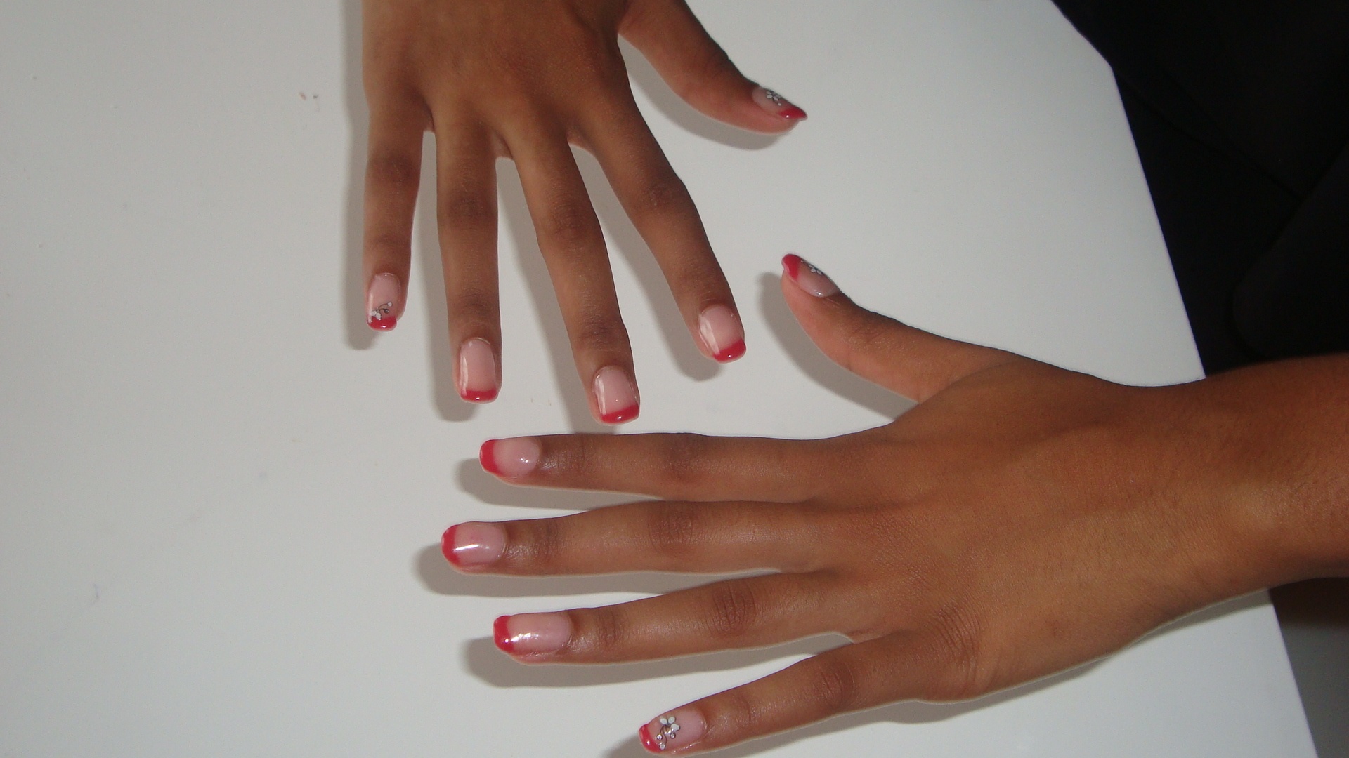 ok, il manque du bombé, tes capsules blanches n'ont un franc sourire, tu devrais t'entrainer à faire ta french toi même, regarde les pas à pas sur le forum et des vidéo qui devraient t'aider, revois tes parallèles aussi, je pense que tu es encore un chouia près des cuti, j'espèr que ta pose va tenir