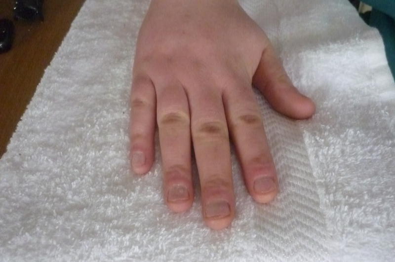 qui n'est pas fait mais m'etant coincee les doigts dans la portiere de l'auto mon ongle repousse seulement donc on le laisse tranquille pour le moment!!!