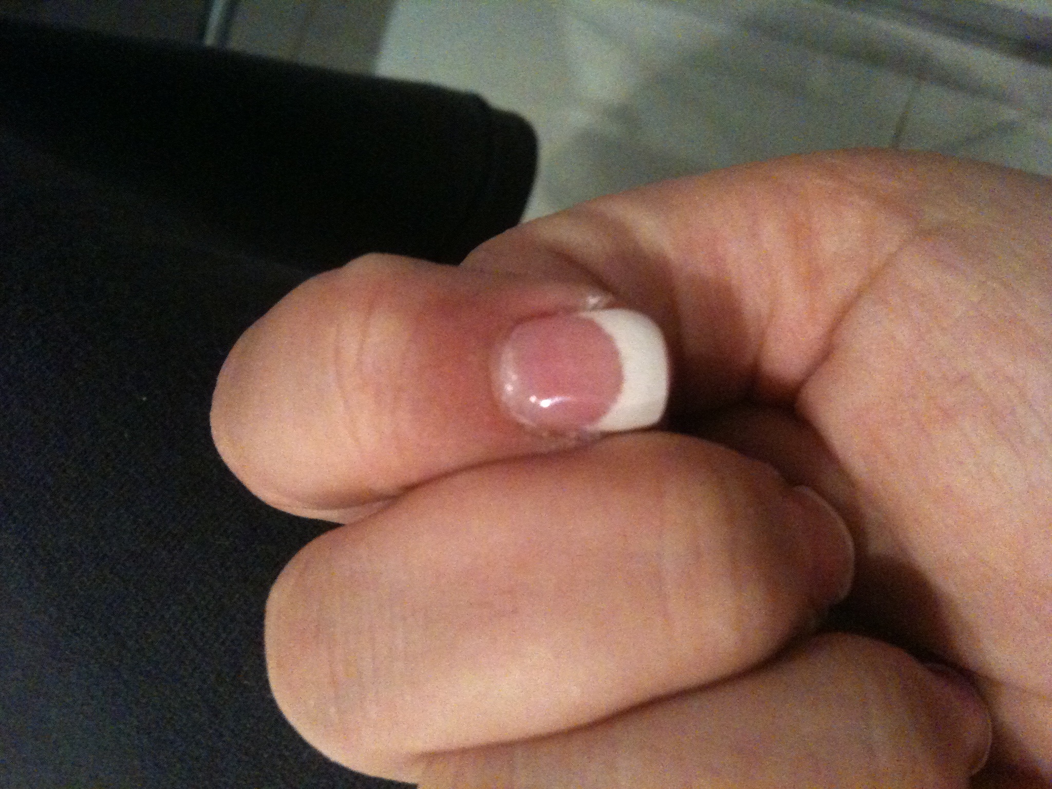 le chablon a l'air bien posé. maintenant, il faut que tu le pinces un peu plus pour éviter un ongle plat.