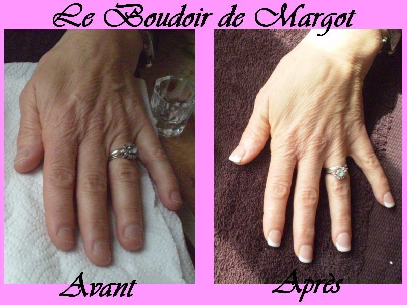 bon c'est loin d'être parfait, mais elle était enchantée et trop contente d'avoir des ongles pour pas cher du tout car je lui demande juste 5 € !!!