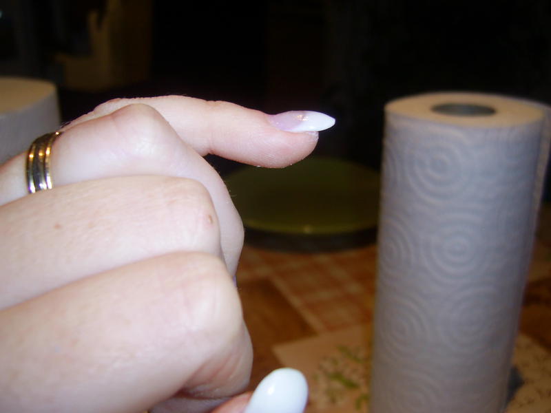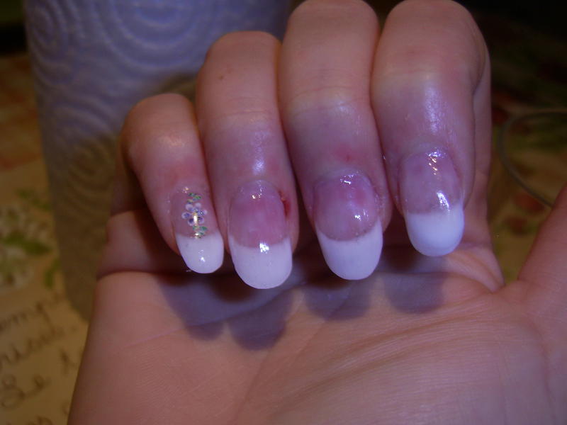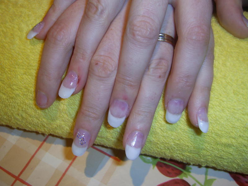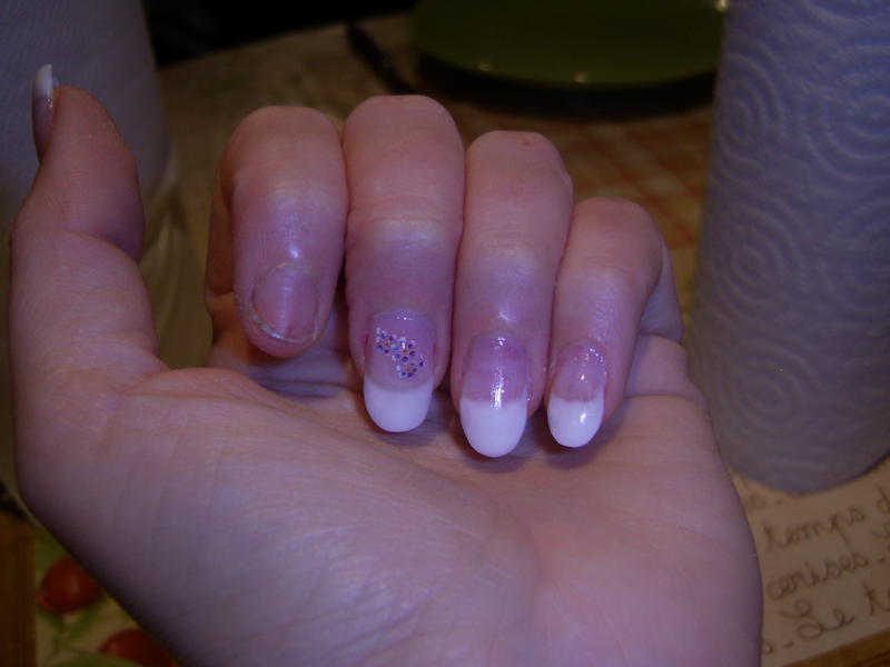 Je ne suis pas très satisfaite de ma pose, les sourires ne sont pas parfait, certains doigts me paraissent larges et comme je m'attaque à mes peaux autour des doigts j'ai un peu morflé lol avec la ponceuse..... bon après je me rassure et me dit que c'est la première fois que je fais ça et que je n'ai suivie aucune formation juste les infos des pros du forum :group:.