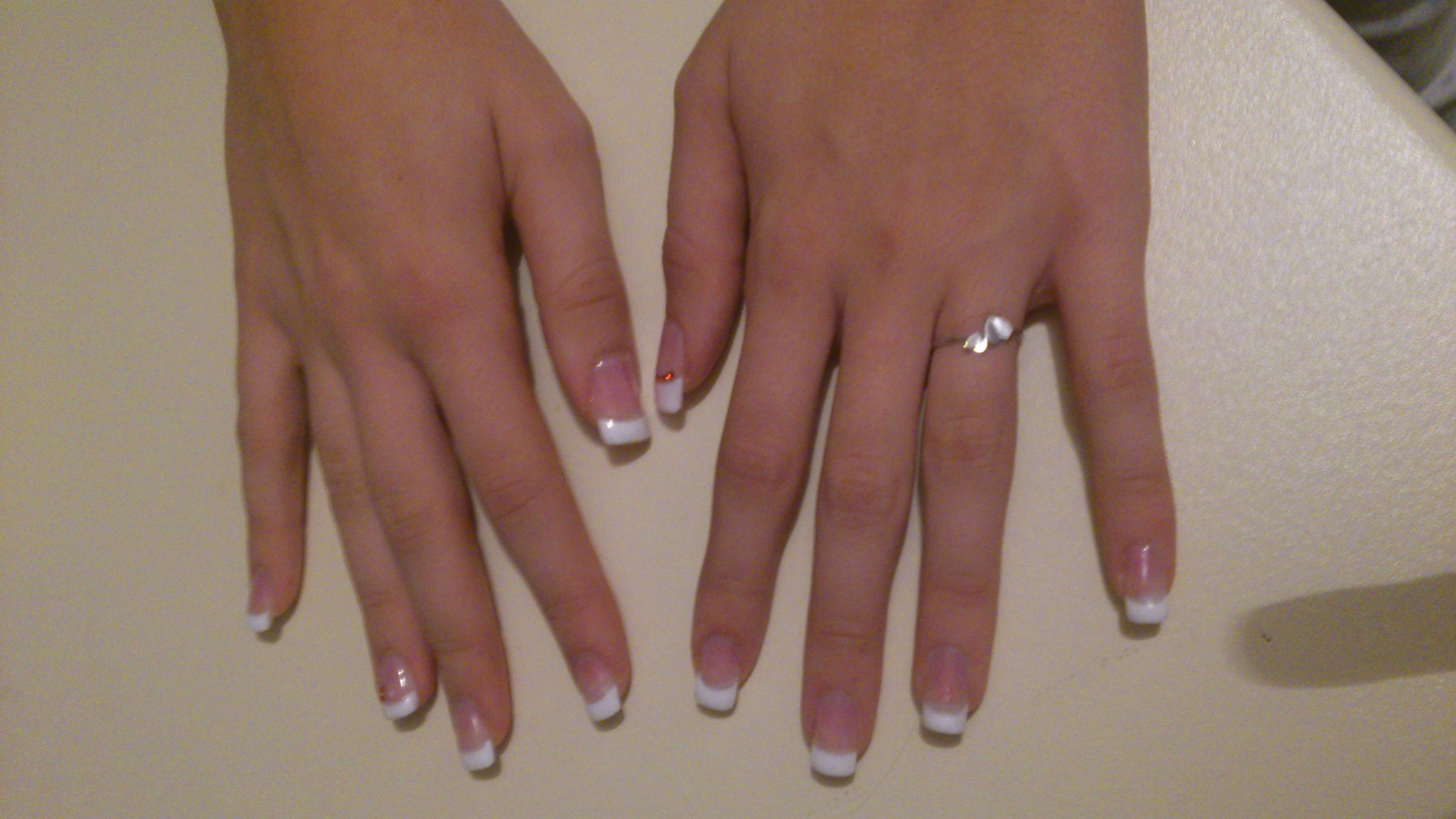 Coucou les filles je suis nouvelle sur le forum. J'ai envie de devenir prothésiste ongulaire et dans l'attente de pouvoir passer la formation je m'entraîne sur ma soeur. Je vous mets en pièces jointes les photos de ma première pose. J'attend vos avis avec impatience pour progresser.