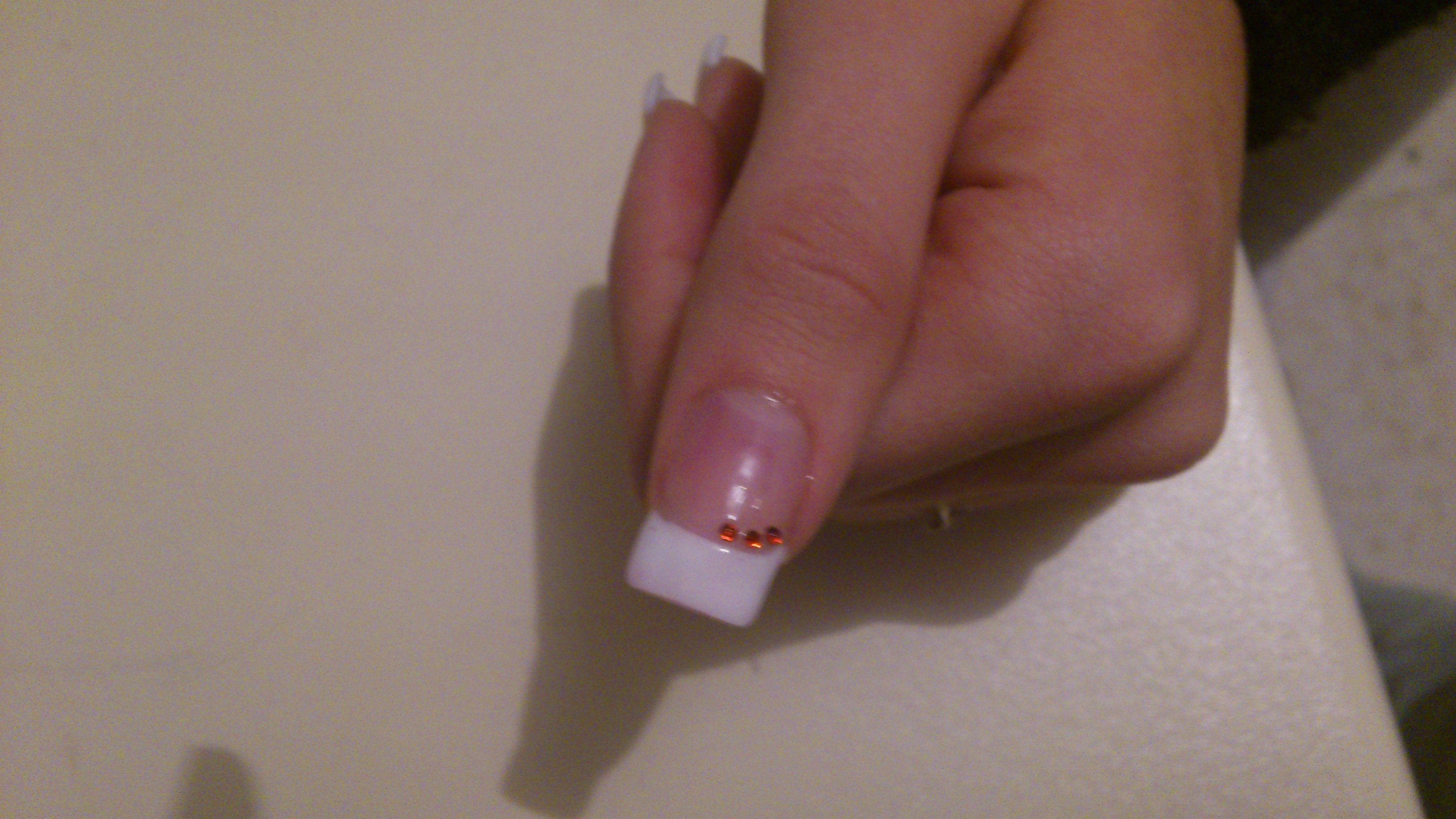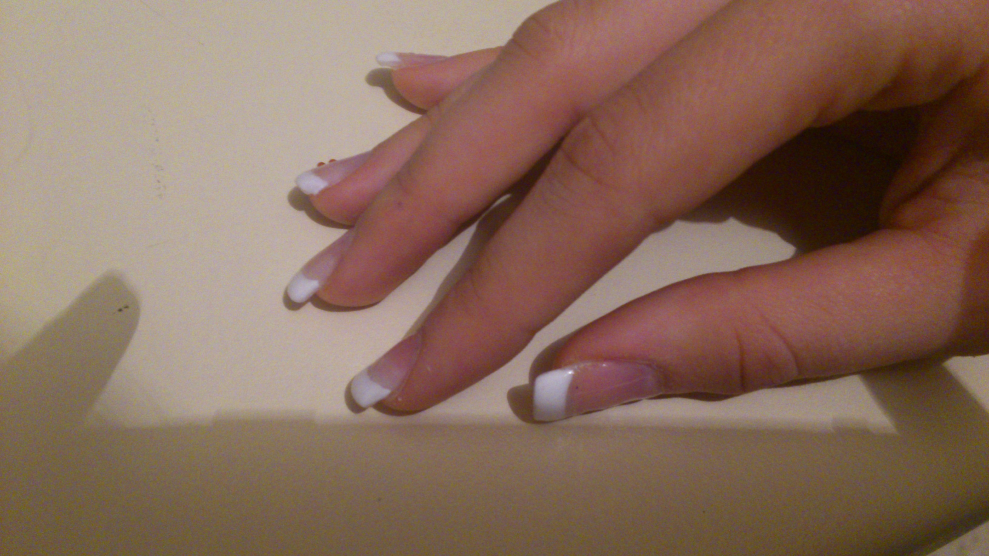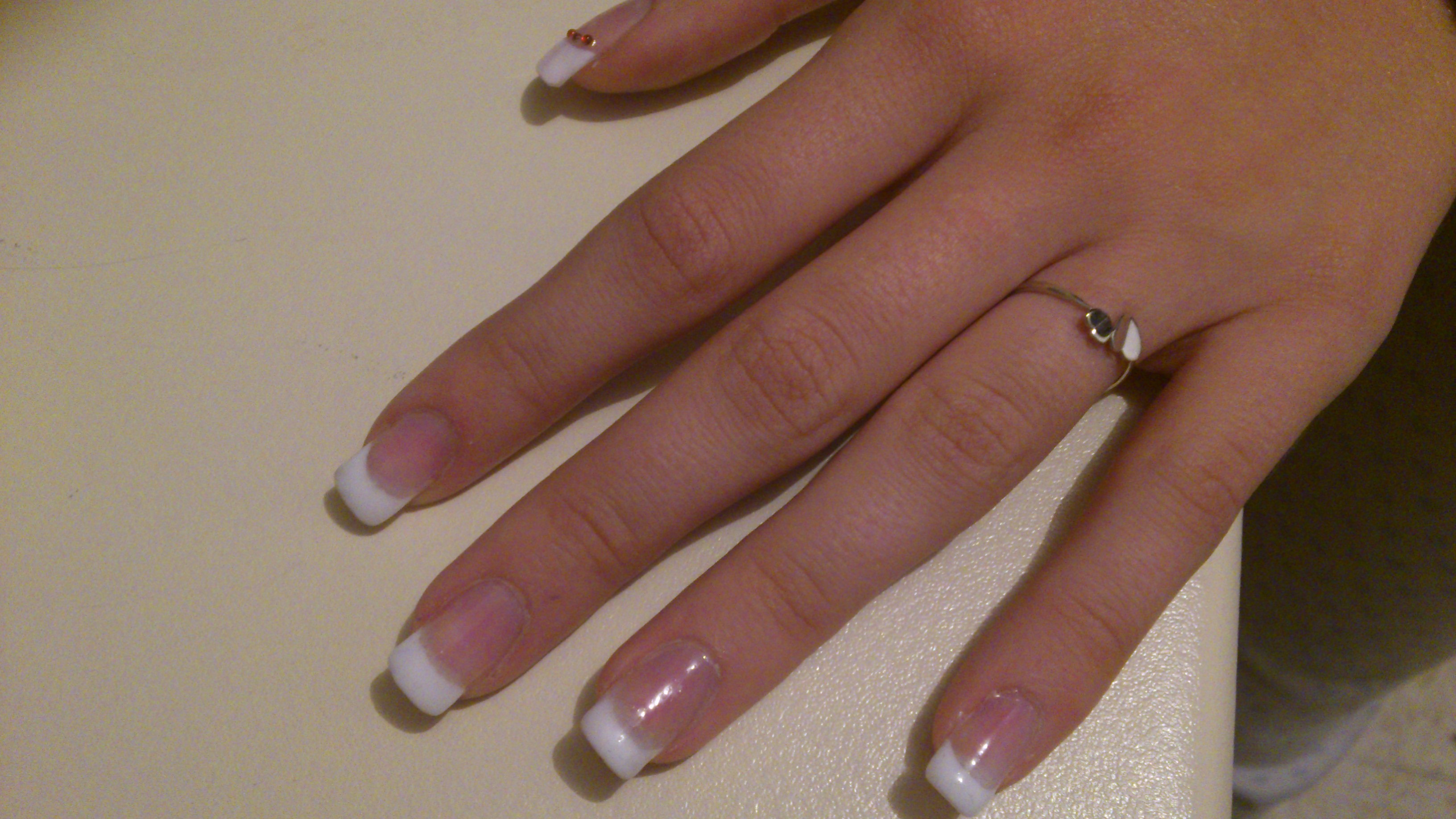 il faut que tu fasse attention a ta french ; elle ne recouvre pas tout les bords libres , ta construction est trop pres des cuticules .. bref c'est bien sans formation mais il est important de se former ;)