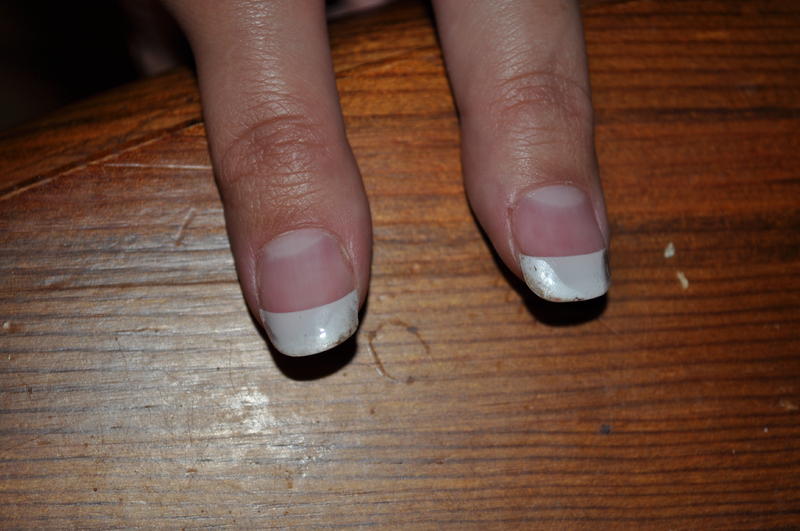 Pour ma première fois, j'ai préféré m'entrainer sur moi et au bout de 2-3 jours j'ai eu la désagréable surprise de voir mon gel se décoller et de la crasse (parce que ça y ressemble) gacher ma pose de capsules french.