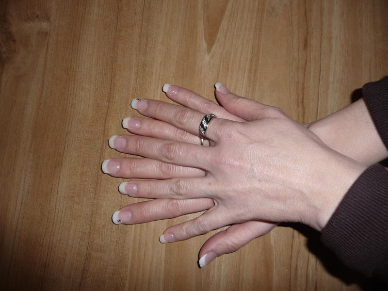 1- un de ses ongles été "déformé", il a fallu coupé son ongle naturel trés court pour pouvoir récupérer une forme convenable