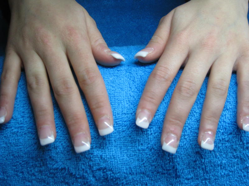 Je dirais juste comme défaut que ta french est trop droite et que certains doigts tu as debordé sur la peau! Est-ce que tu as encore des décollements?