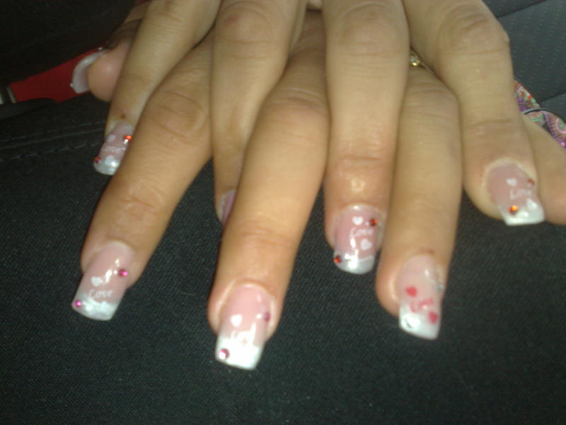 troisiéme pose toute la journée sur ses mains avec pose au chablon elle a adoré et french coco de rydnails trop beau!!! et stamping :frag_facile: elle voulait la déco sur 2 ongles mais comme elle a aimer la façon de poser le stamping (au bout du 10 eme essaye) elle a continuer en blanc sur les autre!!!