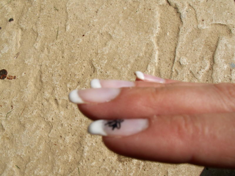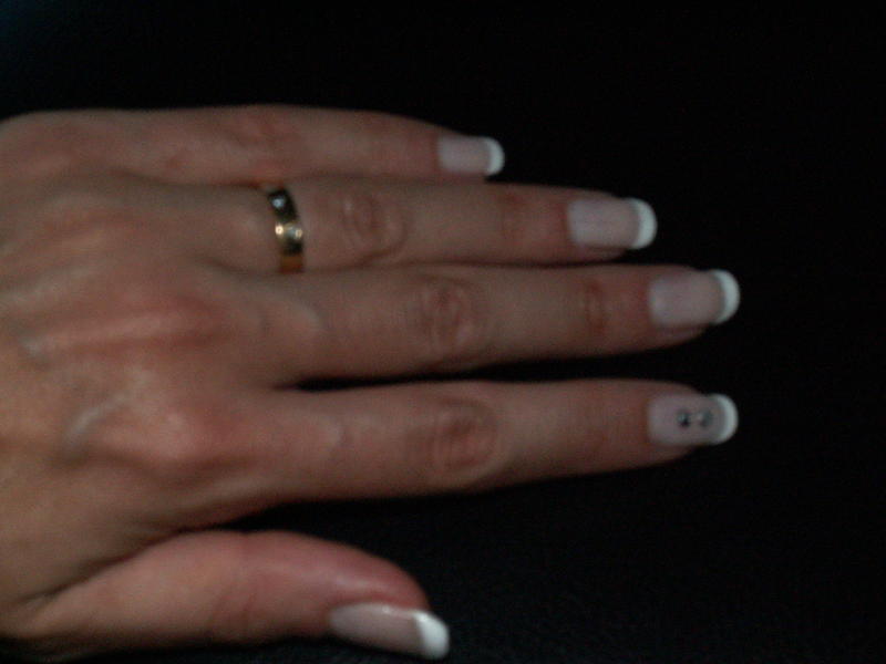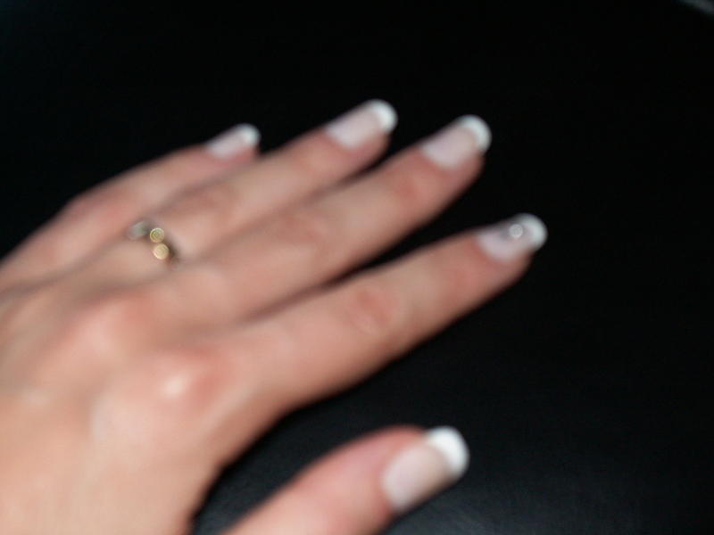 Voilà mon tout premier travail sur mes mimines (gainage au gel) Oups... Je crois que je suis spécialiste en "bombé inversé" : plat juscqu'à la Frenche puis bombé !!!!! Y' a encore du travail !!!!
