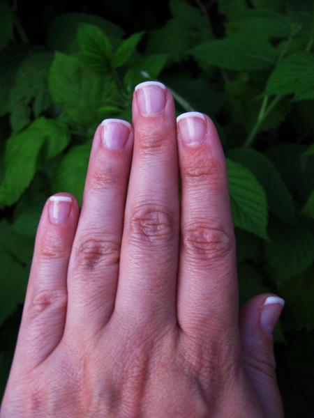 Car j'ai l'impression que tu n'as pas assez repoussé les cuticules, pas d'huile non plus!!! Ta french est bien mais sur des ongles aussi courts il aurait été plus joli de faire un rallongement.