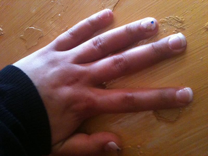 on voit aussi la demarcation de ta capsule sur certains doigts faut bien limer , utilise du tip blender c un produit qui ramoli la capsule et c plus facile a limer . Pas evident sur soi mais avec de l'entrainement ca vient!!!