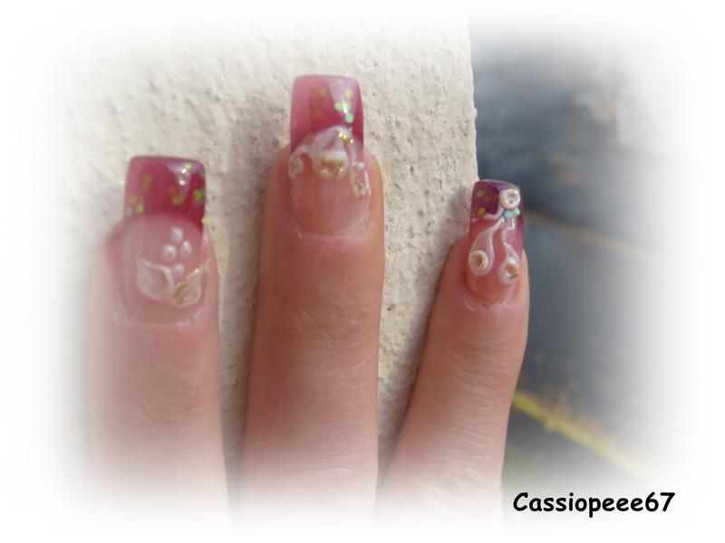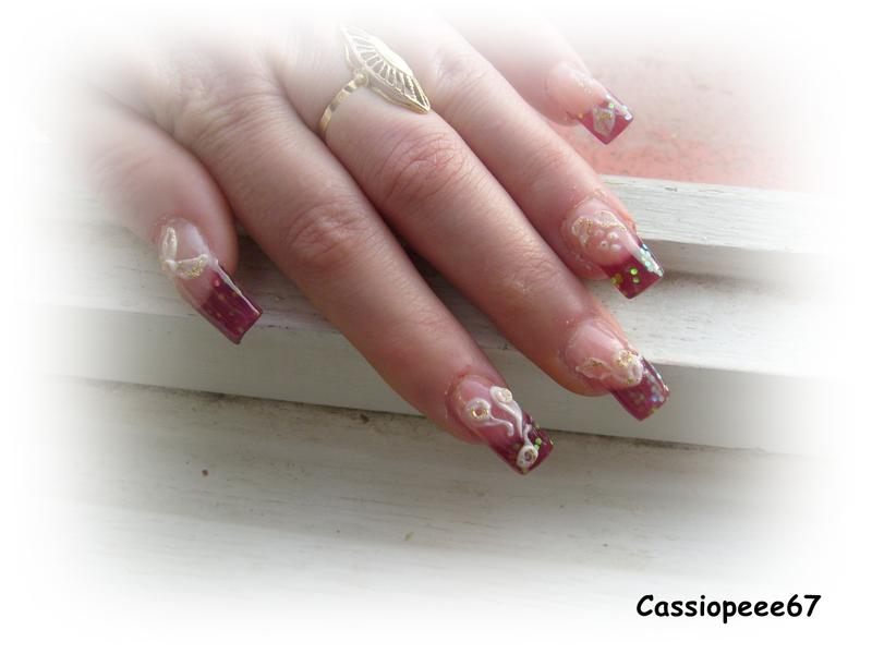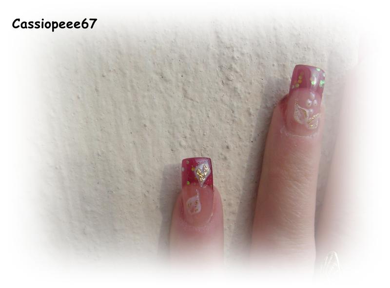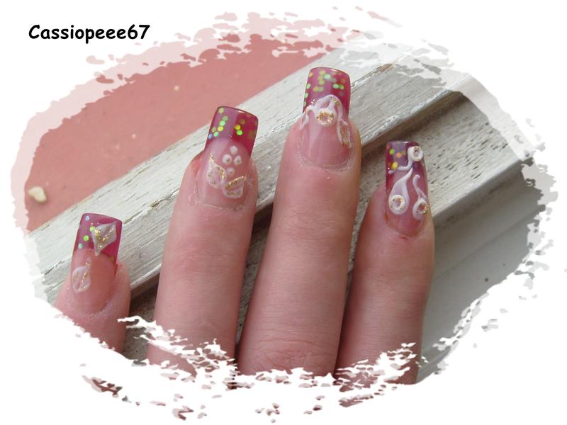 Re : premier intégrale chablon et résine!!!! C'est vrais que mis à part quelques ongles de travers rien à dire surtout pour une première fois et déco tres jolie