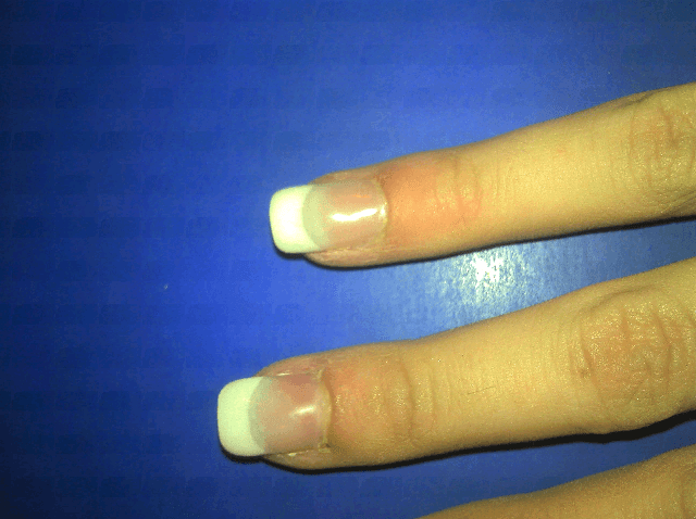 Voila jai recu mon kit et nayant pas encore commencer ma formation jai tenter une pose grace au nombreux pas a pas! Besoin de conseil.... blanc sous la capsule au moment de la colle du tip, dur dur le bombé,le sourire aussi mais avec de l'entrenement... jai pas mal deborder sur les cuticule je trouve mais vos conseils sont les bienvenue! Quand je vois les première pose de certaine debutante je minquiete....