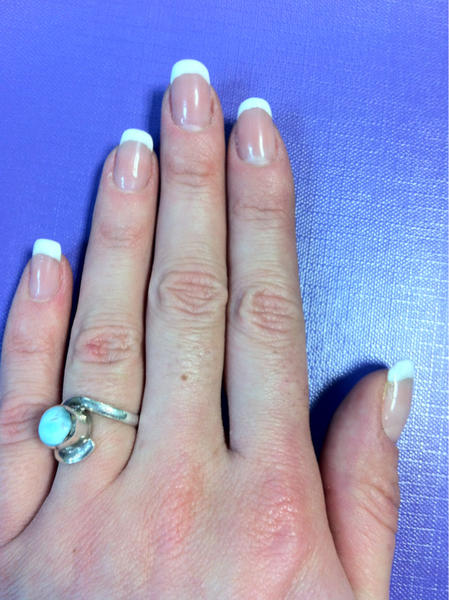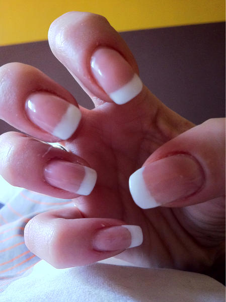 Bonjour les filles voici la pose apres avoir recommencer ! Comme c'était pas terrible les paillettes j'ai limé pas mal pour que les paillettes se décollent et j'ai reposé une french en appliquant les quelques nouveaux conseils échanges sur le fofo.,,