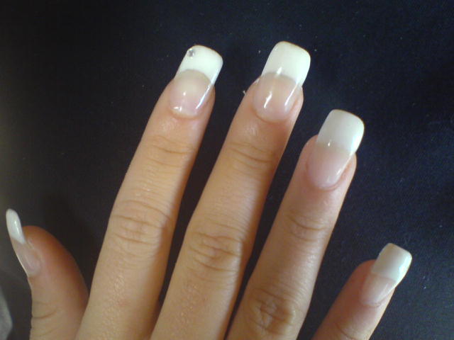 sur ongles rongés on ne fait pas aussi long , cela devrait vite sauter car les rongeuses n'ont pas l'habitude d'une telle longueur, ensuite la french est trop haute donc on voit le bord libre, ellle est trop grande également et épaisse, tu n'as pas assez limé sur les cotés donc papattes, et il manque sérieusement de bombé vu la longueur...