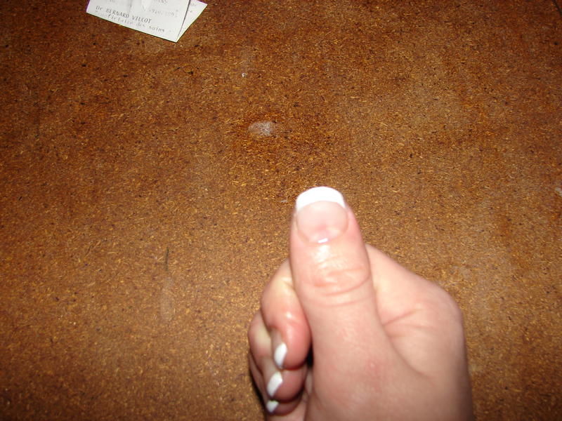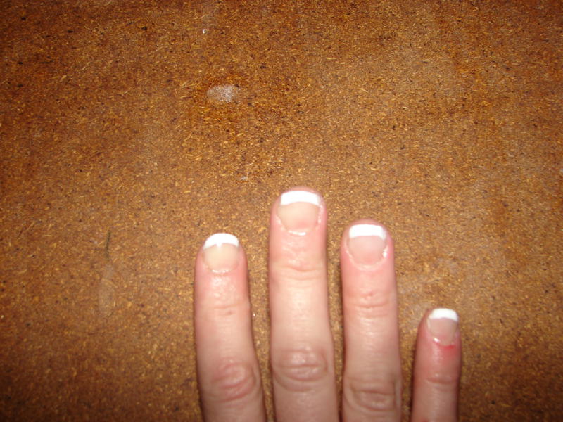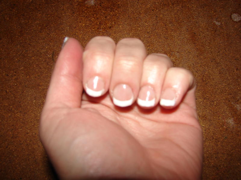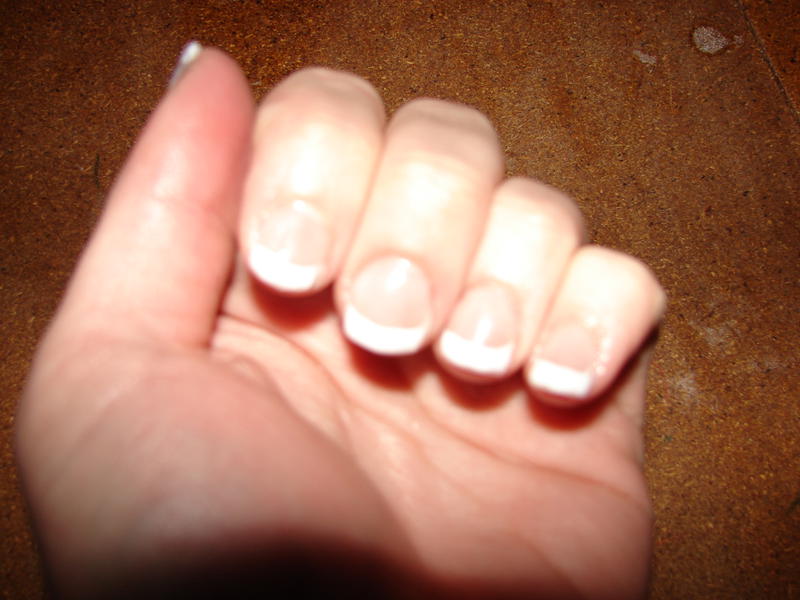 Alors la forme de ton ongle est irreguliere, ca manque de matiere, lime encore un peu tes //.