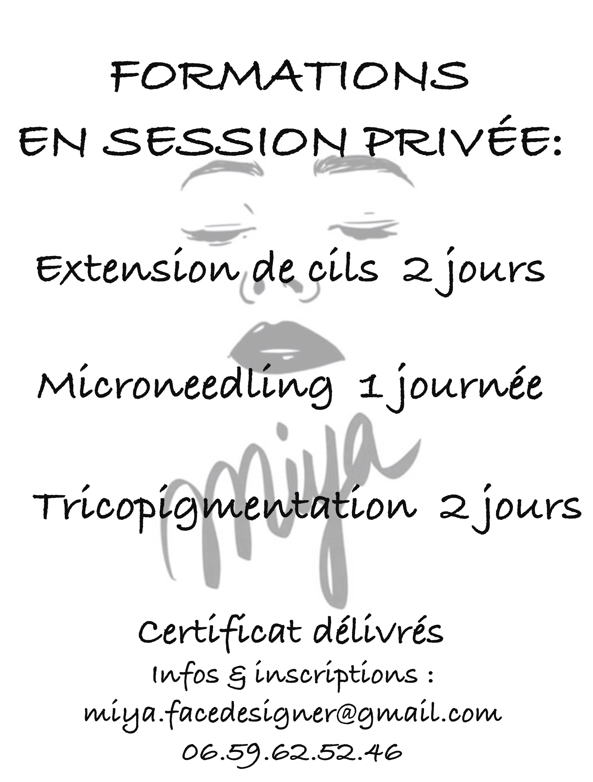 Private Sessions Formations Throughout France by Miyafacedesigner on Instagram and Facebook