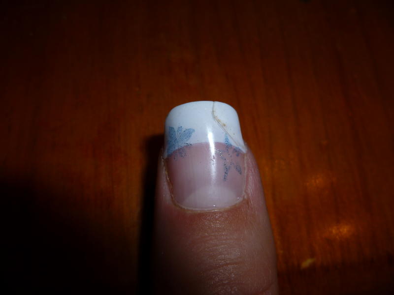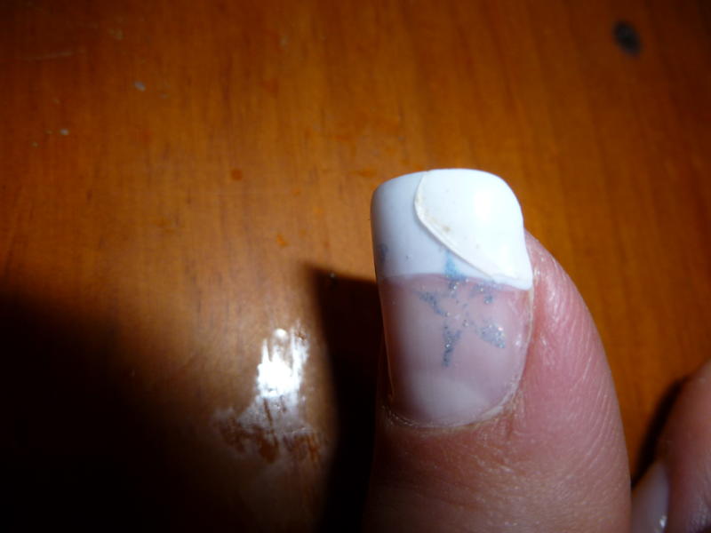 étant débutante, j'ai encore besoin de votre aide. J'ai fait une pose de tips french mercredi dernier et voici mon pouce 5 jours après. Après un choc, le tips s'est fendu et avecv le temps il s'est cassé comme sur la photo.