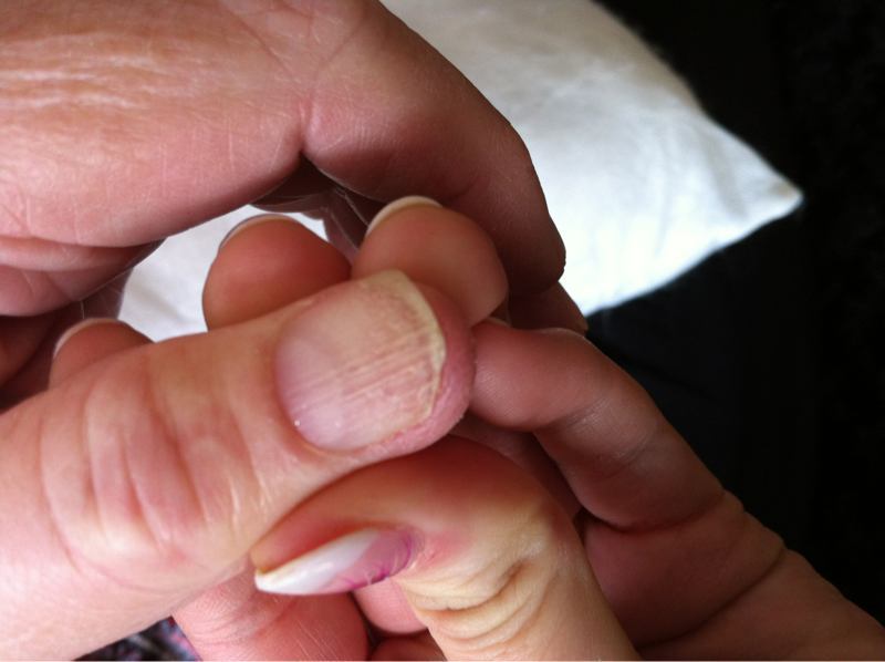 :) cest l'ongle qui se barre tout seul par endroit en faisant des taches???faut dire qu'elle fait rien a ses ongles meme pas de vernis incolore...