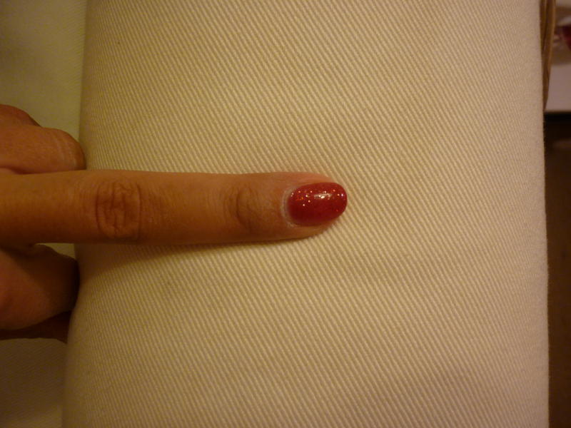 Ma copine qui est venue aujourd'hui je voulais pas de bombé: elle deteste et donc elle les voulaient trés plat (effet comme vernis) et donc je n'ai pas fait de constu (comme je faisais un peu avant...) mais comme elle a les ongles hyper courts j'éspère que ca tiendra bien...mais bon je m'entraine comme je viens de commencer donc elle est indulgente...