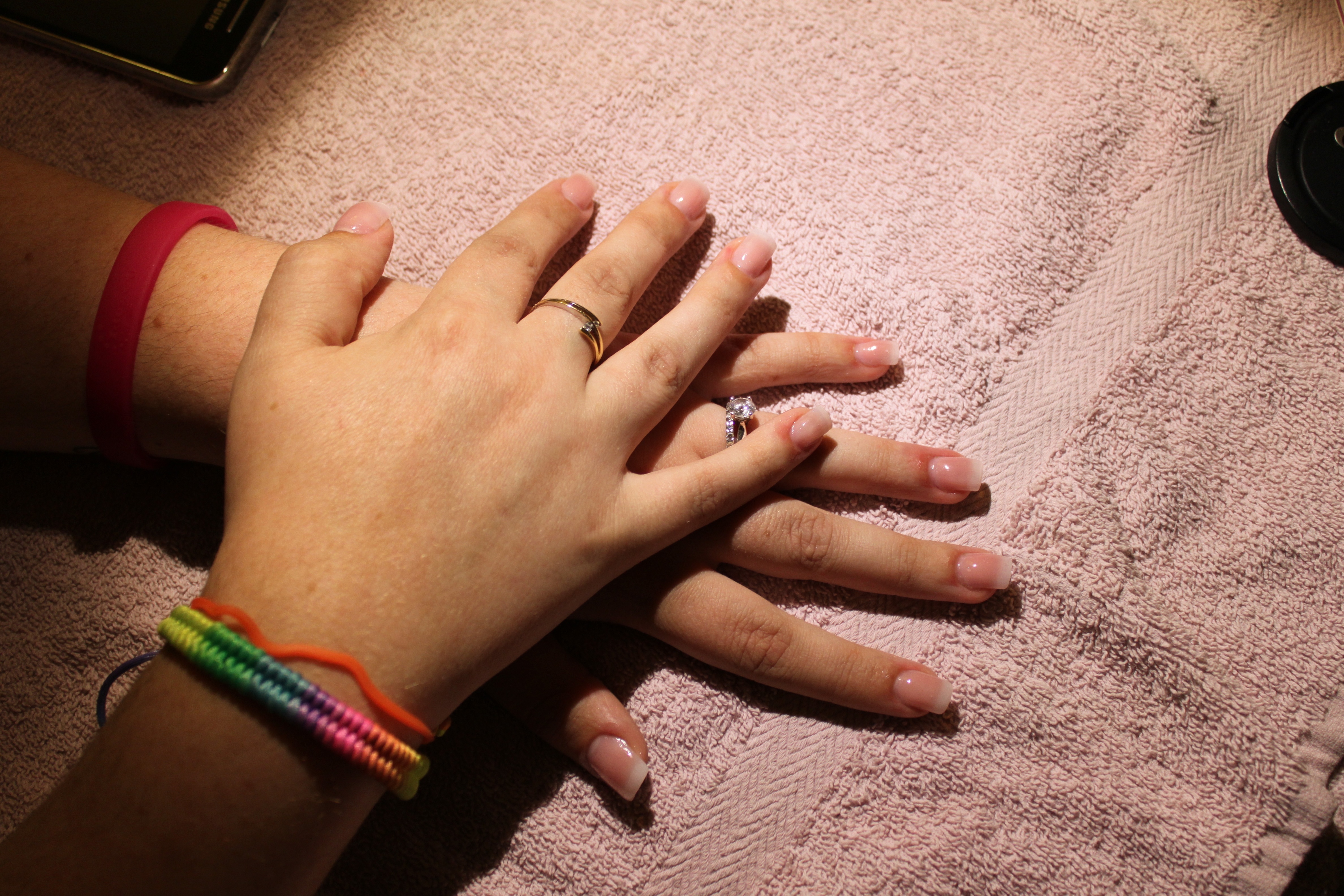 je suis retournée voir l'esthéticienne qui est aussi manucure, elle m'a remis mes deux ongles manquant, le lendemain j'en ai encore perdu et n'ai pas osé retournée de suite la voir , j'avais pris un rdv pour faire un remplissage une 15 de jours après mais quand j'y suis retournée il ne me restait plus qu’un ongle. elle m'a dit que je ne supportais pas le gel qu elle m'avait appliqué. hier, elle m'a refais une french mais sans faux ongles en me mettant du blanc au bout de l'ongle et du gel, mais dans la soirée le gel a commencé aussi a se décollé et j'y suis donc retournée aujourd'hui pour tout retirer car je n'avais plus que cinq ongles. elle m'a dit que l'on allait essayé un vernis permanent par la suite