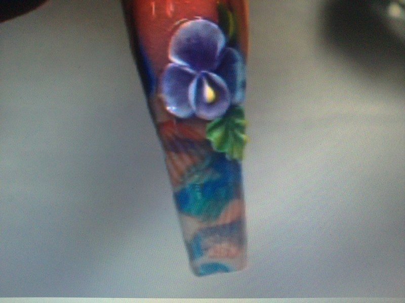 Photo 1: ca partait super bien, meme si ils ont "marqué" le rallongement, vous savez avec le repousse cuticule...je déteste quand ils font ca, ca commence à tout gacher! Donc ils ont fait une french marbré avec le vert de la collection season, et avec le turquoise et le bleu de la collection organiccolor...puis ils ont tout gacher en mettant trop de déco dessus, comme d'hab!