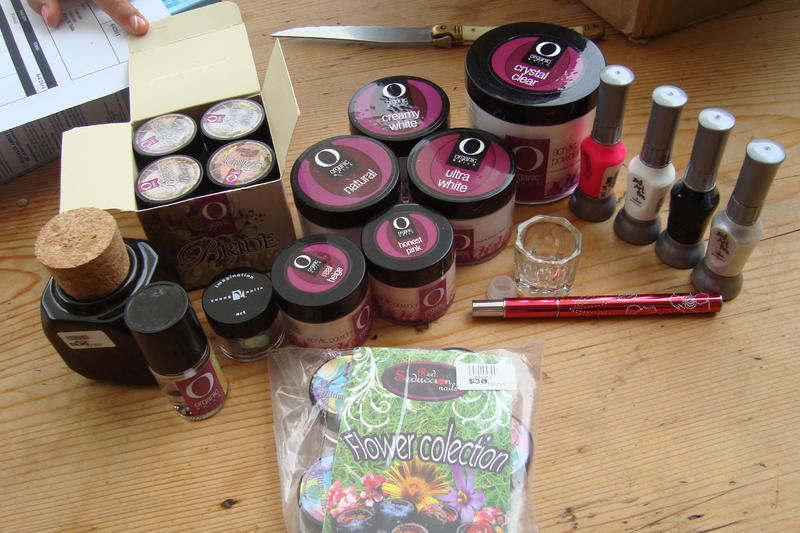 je vous met mon achat et de ma toute petite pose où je melange des poudres oganic et nail factory....