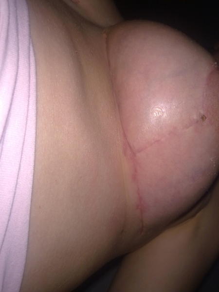 coucou les filles, merci pr vos messages. je suis super mais super contente et si c t a refaire je signe de suite. point de vue douleur c gérable avec du doliprane ce ne sont pas vraiment des douleurs mais plutot une sensation de fortes tensions. au début les seins sont hyper dur et plein d’hématomes comme vous pouvez le voir sur la photo. ca a duré une bonne semaine et après ca c'est estompé petit a petit. au bout d'un mois nickel plus mal. les cicatrices sont restées rouges pendant 6 mois environ et la c super beau. je vais essayer de reposter une photo du résultat tel qu'il est aujourd'hui.
