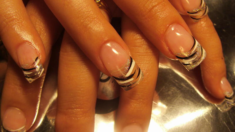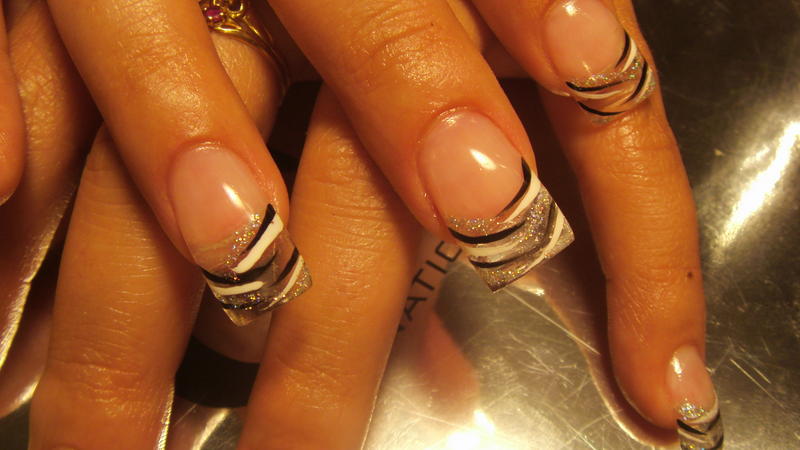 pour ce qui est de la forme palmée donné aux ongles c'est ma cliente qui demande ça...elle les aime comme ça!!! pas de rallongement de plaque elle n'aime pas parcontre lol moi j'en aurais fais un petit pour au moin cacher l'ongle naturel...et traits de liners épais à sa demande...ça en fait des choses:infosactualite: