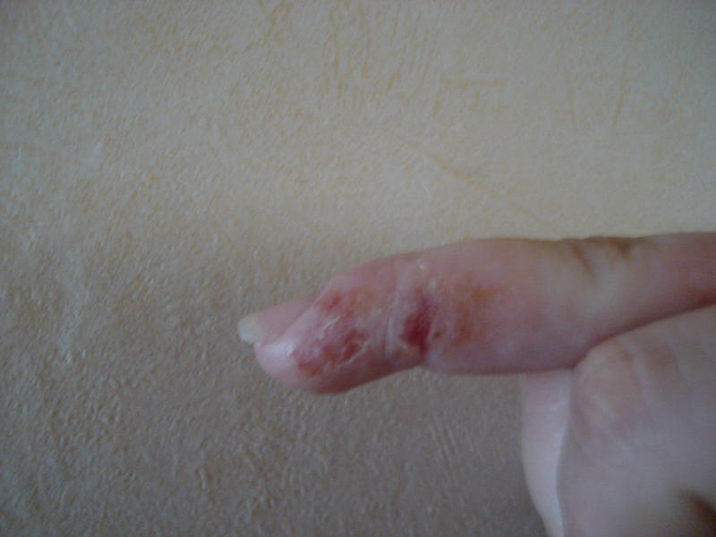 Ca a commencer a faire des cloques d'eau qui sont vite devenues des plaques qui sont maintenant rouge vifs et tres douleureuses.