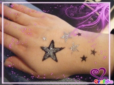 tu veux que je te montre quoi? mes tatoos sont en 1ère pageles a s tu utiliser avec leur colle , car moi j'avais de la colle latex d'un autre kit ....