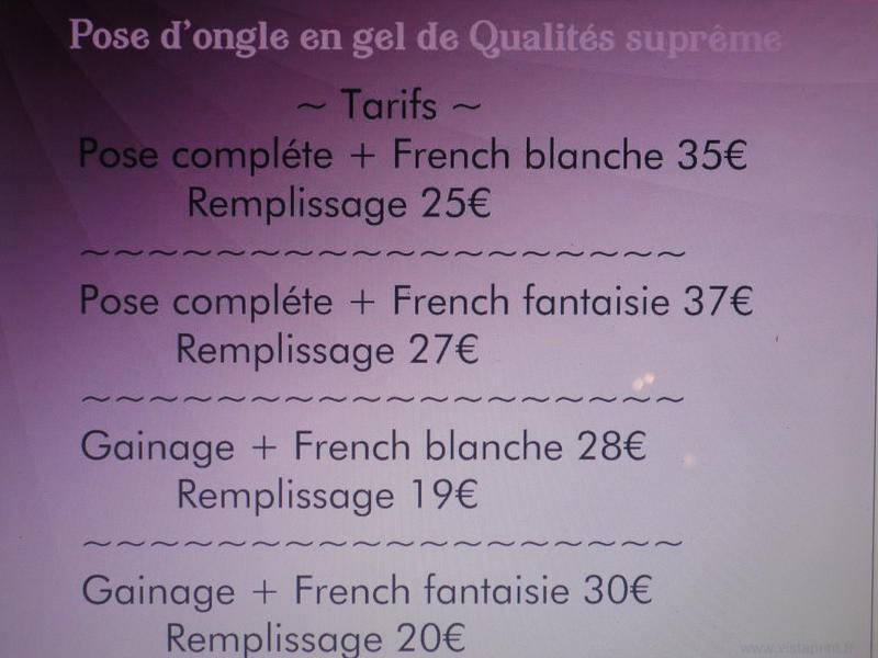 ou alors je pose des produits de m***** , je fais une pose vite faite avec des capsules blanches. il y a une chinoise par chez moi qui fais ça à 35 euros, celles à qui mes prix ne plaisent pas vont là-bas. celles qui veulent de la qualité, de bons produits et un travail soigné viennent chez moi. après c'est un choix global.