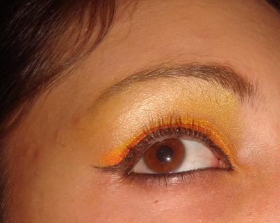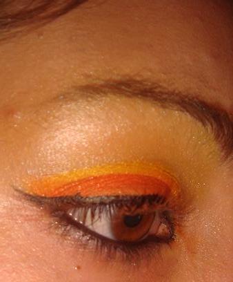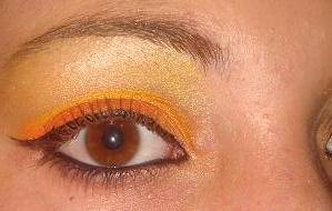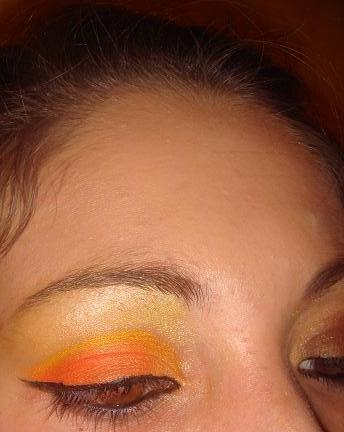 3em orange avec banane jaune , arcade jaune citron nacré , liner noir, kôl