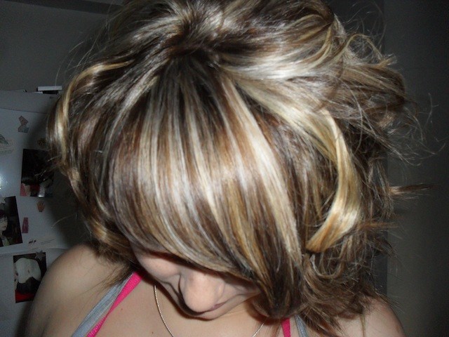 ci tu veux quelques mèches plus foncé fait en un peu partout et peu moins sur le dessus pour garder je coté lumieux du blond et plutot du 8.31 en vole trés fins