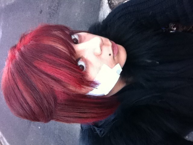 coucou les filles depuis que je me suis teint les cheveux en rouge je sais plus comment bien me maquiller parce que avant je mettais un joli rouge a lèvre rouge et la je trouve que ca fait trop "m'as-tu-vu" donc bon si quelqu'un peut m'aider .. je vous joint une tite photo faite pas attention au pansement me suis fait opérer hier lol bisous a toutes ^^