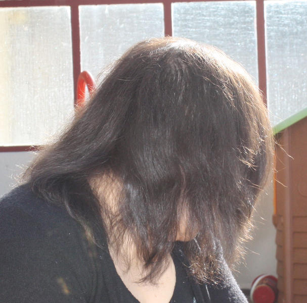 c'est bon j'ai trouver lol encore désoler pour le cadrage mais a 5 ans je trouve qu'il se débrouille pas mal lol j'ai mis plusieurs photo pour qu on vois bien la couleur et l'épaisseur des cheveux