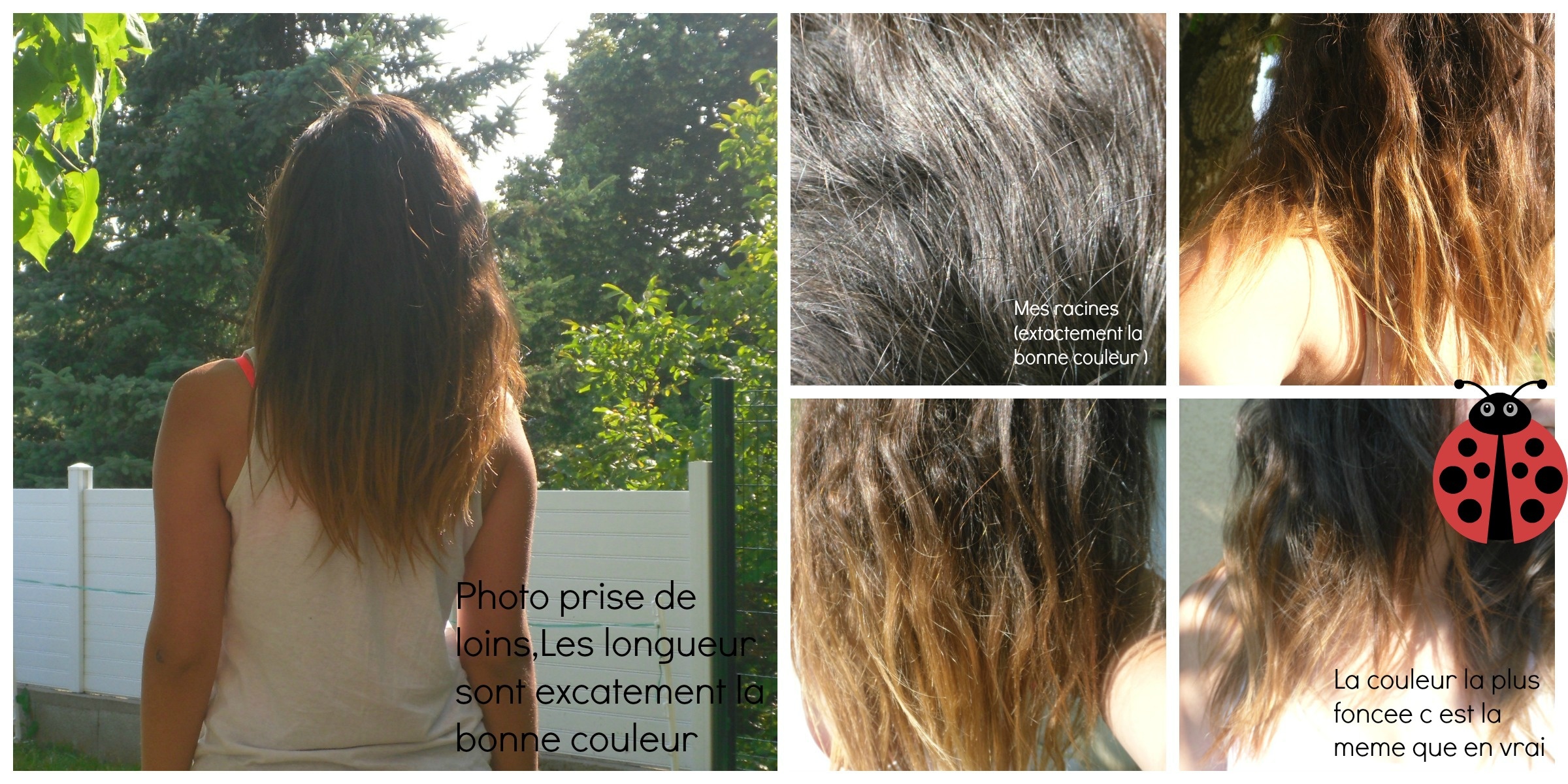 Bonjour je souhaite acheter des extensions, mais je ne sais pas quelle couleur choisir, j ai les cheveux brun et les longueur un peu caramel (j ai un ombre hair ) je ne sais pas si je dois prendre les couleurs de ma racines ou de mes longueurs .. Pouvez vous m'aider ??? Voila des photos pour bien voir la couleur de mes cheveux au soleil . Merci de vos reponse !