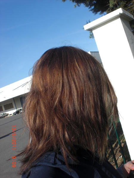 Pour aider un peu, il y a quelques temps j'ai recoloré dans ma couleur naturelle et il me semble que ma coiffeuse m'a parlé d'un 5.54. Elle m'a épargné plusieurs mèches blondes toutes fines.