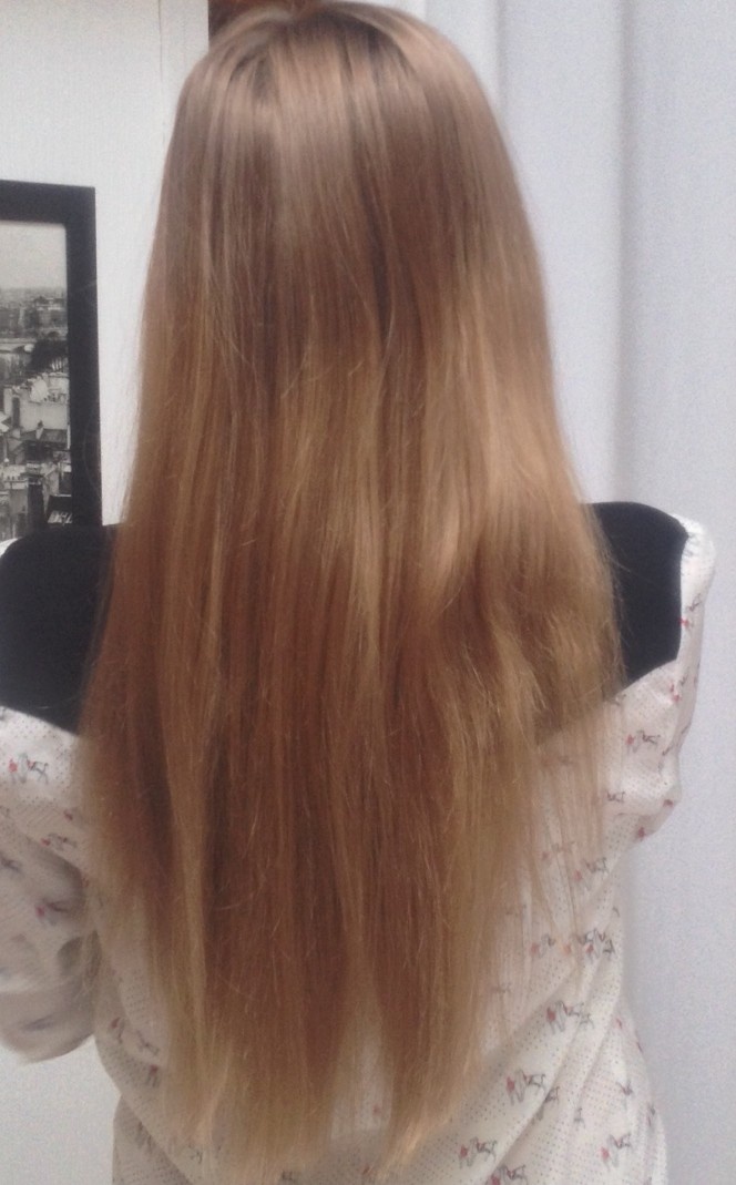 Je vous met ci joint des photos avant (il faut regarder les longueurs car j'ai 15cm de ma base en racine blond cendré) et une photo après la colo 8.1 (qui fait plus cendré en vrai que la photo).