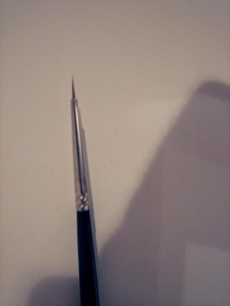 Voilà Patricia, c'est le pinceau le plus fin que j'ai trouvé dans un magasin spécialisé en peinture. Tu peux prendre aussi un pinceau avec de très longs poils très fin aussi... Biz